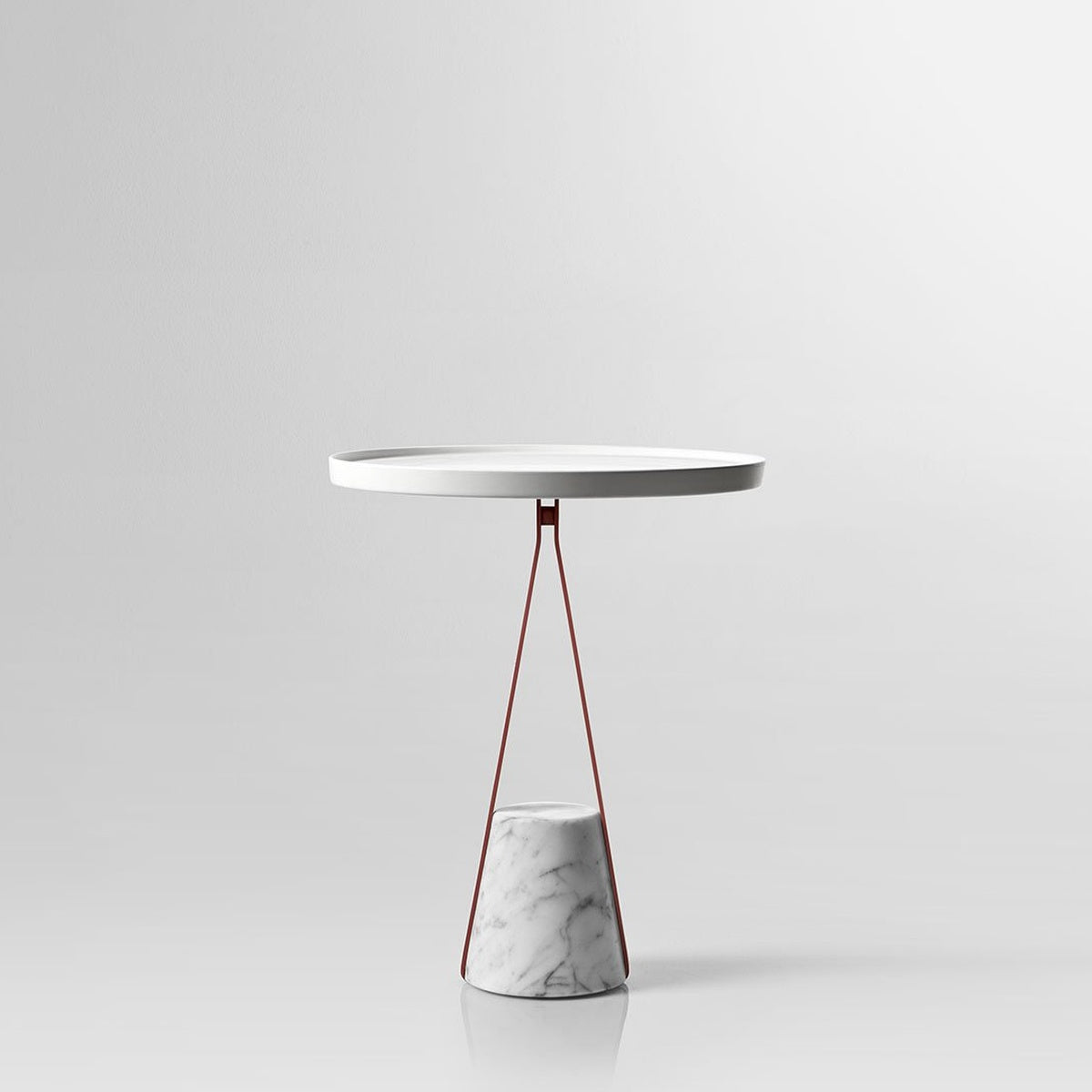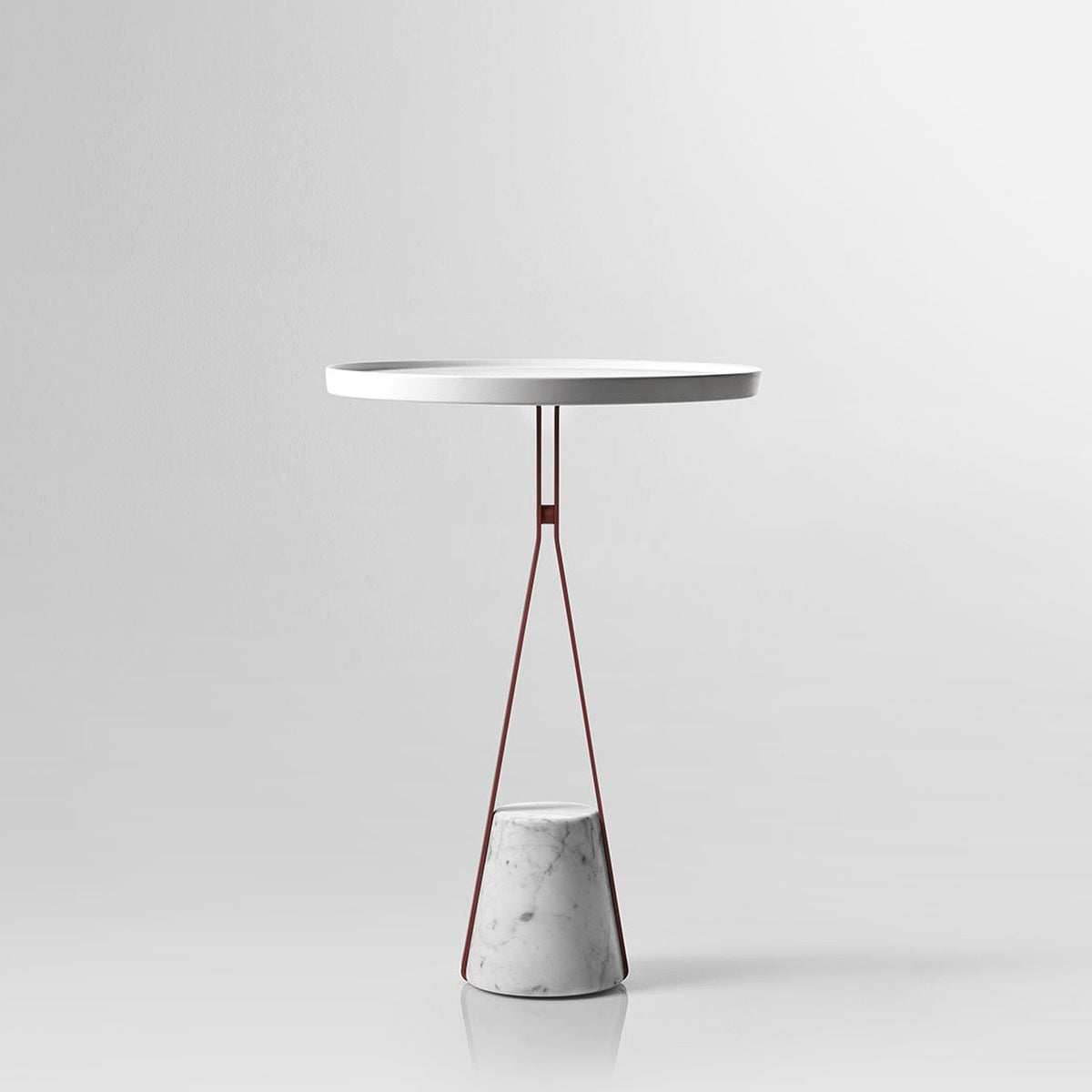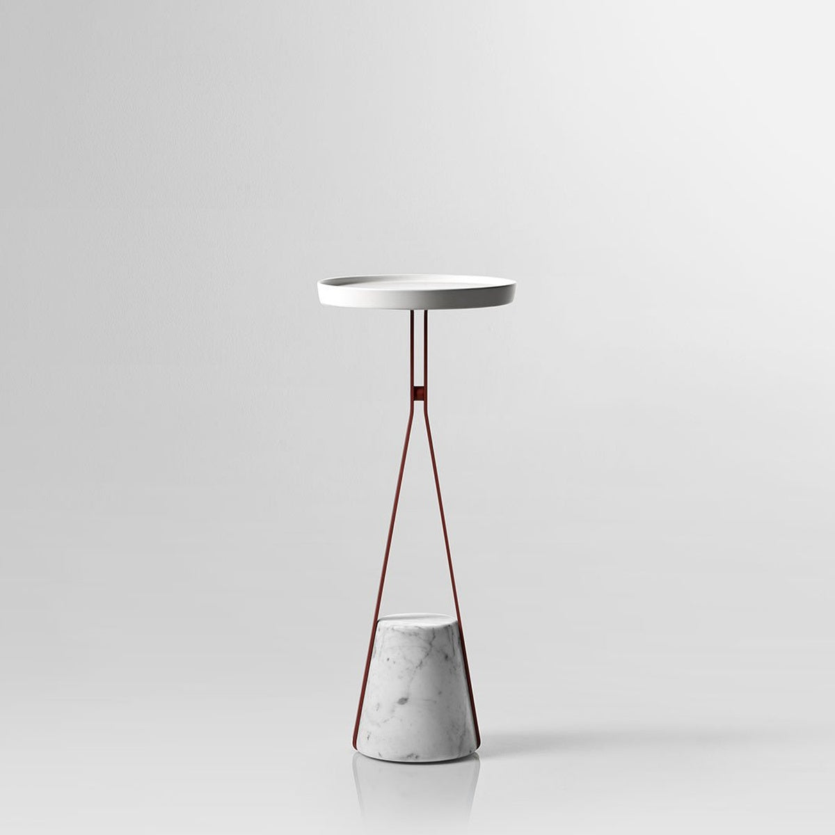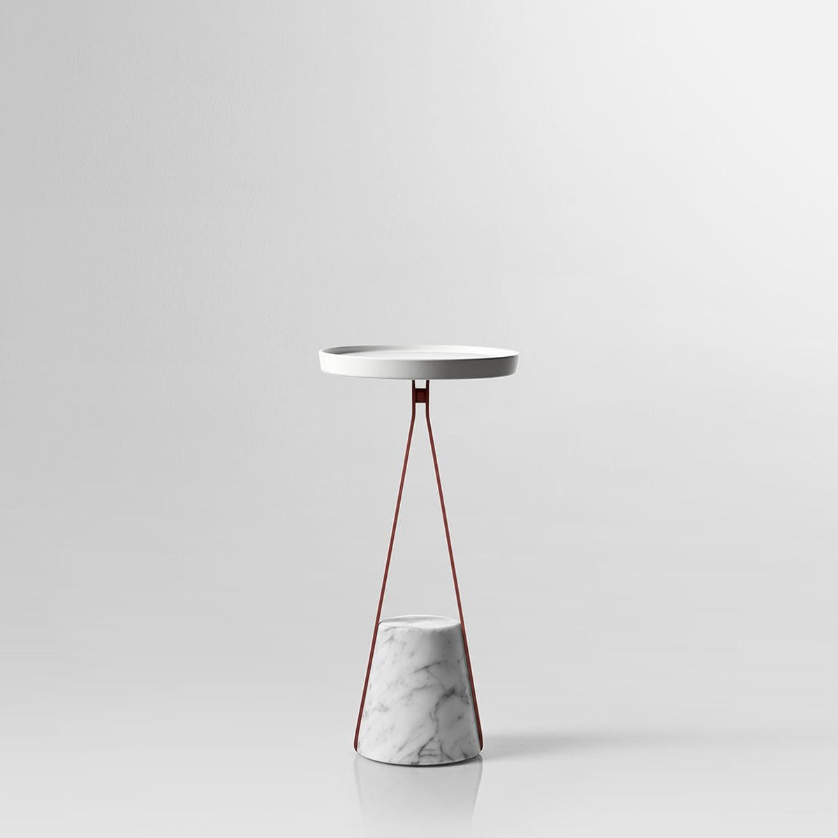 A truncated cone base in satin Carrara marble as an identity trait, a brass metal structure, available in the different colors that antoniolupi offers, and a profile to find a meeting point at a certain height from which to develop the different configurations. In the table version, for example, the circular tray made of Flumood or Colormood, provides a convenient support surface for placing objects intended for personal care and for carrying out personalized wellness rituals.