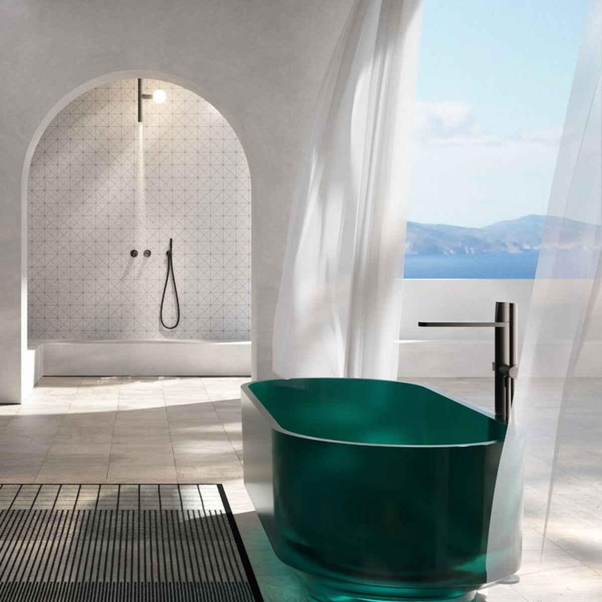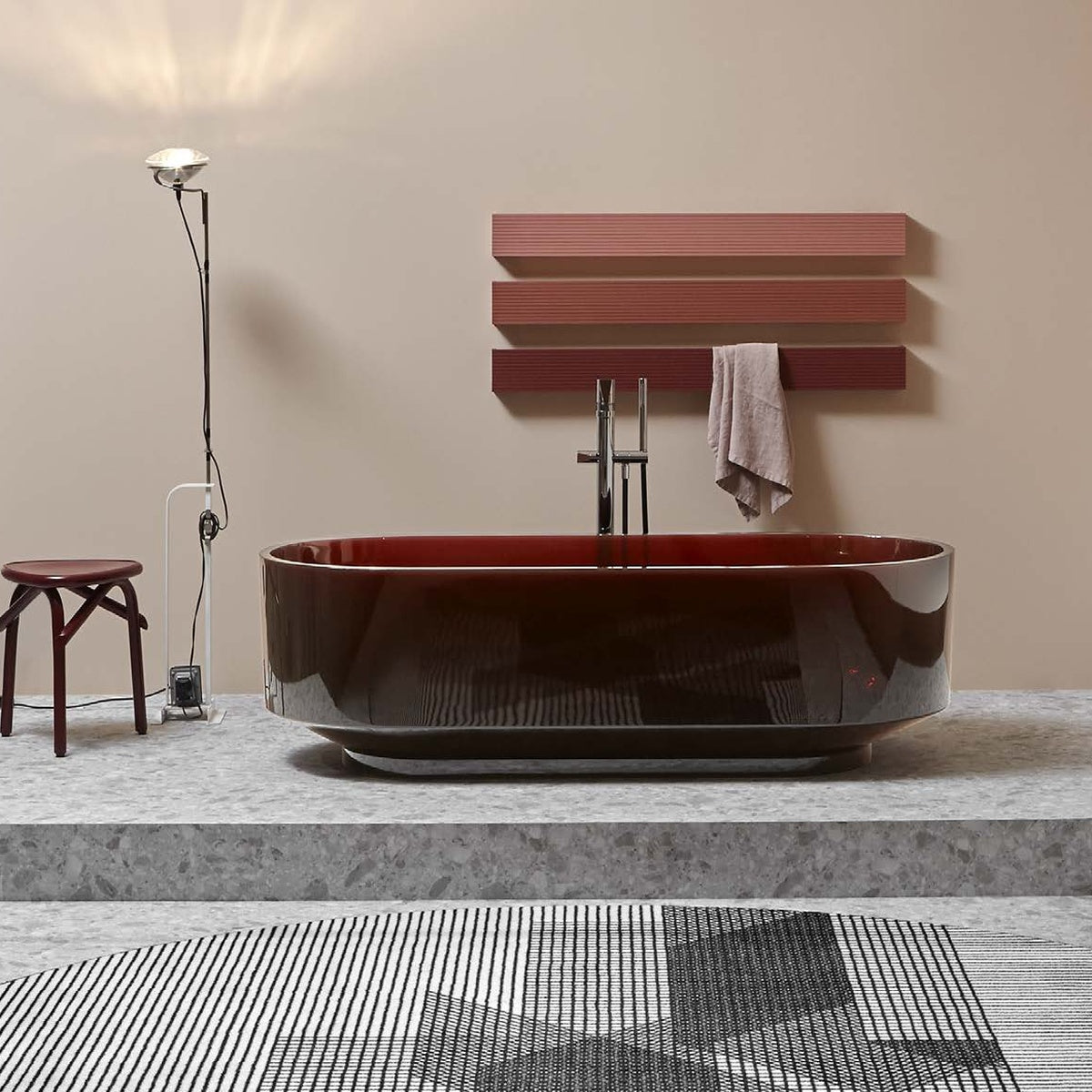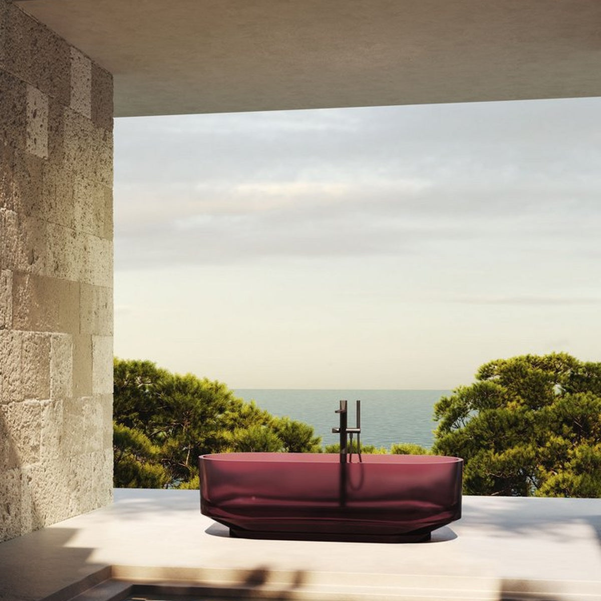 Essential shape, a welcoming volume and iconic in its essence. The freestanding Borghi bath is made of Cristalmood, Icemood, marble or stone. The marked chromatic personality and the typical reflections make it an absolute protagonist of the space, a remarkable element around which to build the bathroom environment. The volume is pure, capacious, ergonomic, lightened by a narrow base.