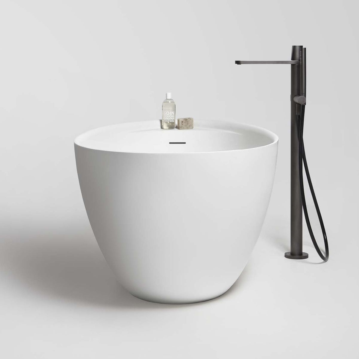 Made of Biobased Cristalplant, elegant and functional like its bigger sister, Eclipse Small is also an enveloping egg-shaped bathtub that ergonomically welcomes and protects the body. Can be easily placed even in smaller spaces, with a length of 160 cm, it doesn’t make you regret larger bathtubs. To increase its functionality, Eclipse Small has an integrated shelf that embellishes the edge and that can accommodate everything you need at your fingertips.