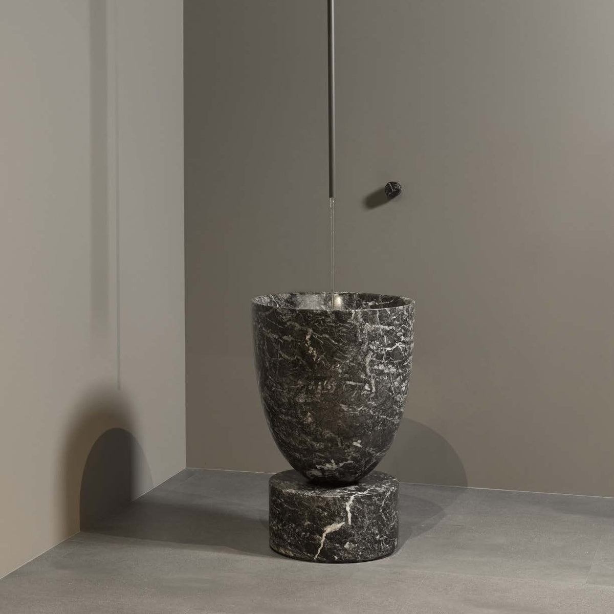 An idyllic world, a mythological sign, a dream of eternal beauty. From the earthly paradise, in which everything is in harmony, to the complete fusion between matter and water, between primordial elements that man governs, transforms, contemplates. Arcadia is the freestanding marble sink that interprets the ideal of accomplished beauty. A pagan baptismal font, a basin that welcomes, purifies, accompanies the daily ritual. A body of water in which to be narcissistically reflected as in a natural lake.