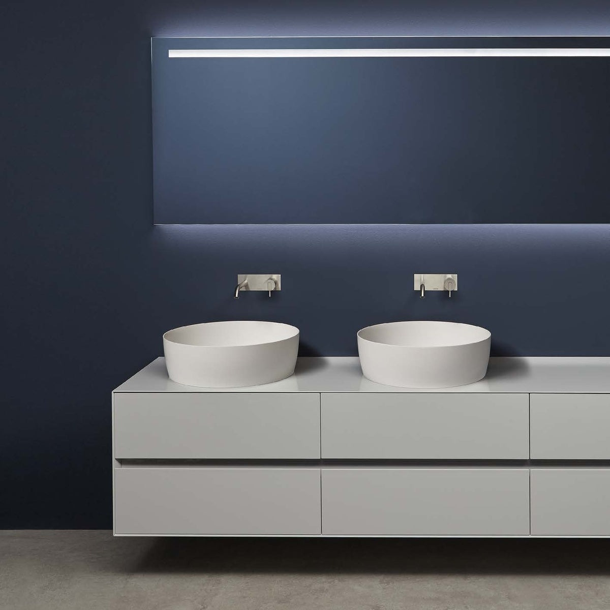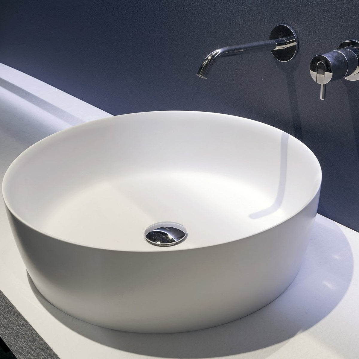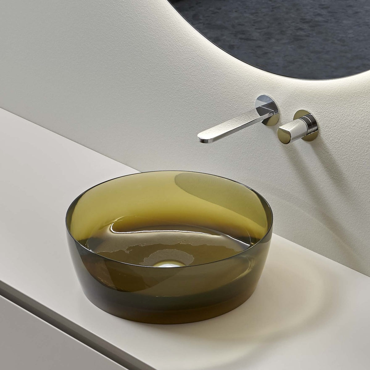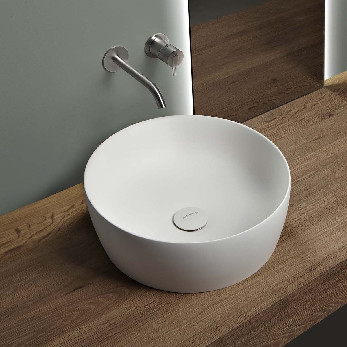 Catino. Many meanings, a form that has evolved over time, a feature, that of holding water. A new material, Flumood, patented by antoniolupi, and the ability to turn into material "malleable" like clay for pottery. The edges are made thin but resistant, the image becomes lighter, as well as the weight, the basin becomes larger, while maintaining the same dimensions. Form and function, perfect blend for the contemporary bathroom.