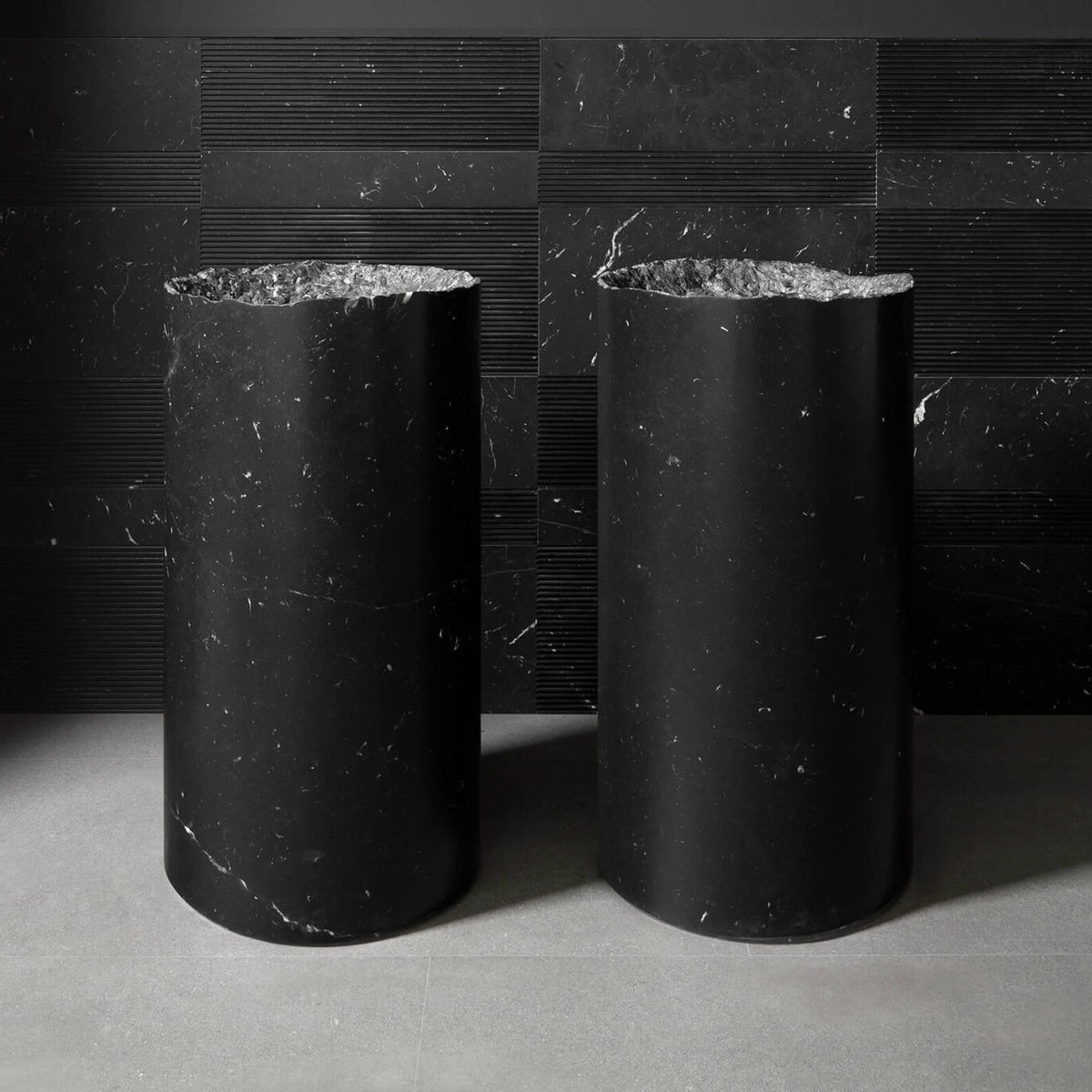 Neolitico, and it could only be called so is the new freestanding sink obtained by manually digging the basin, to simulate the action of water that drop after drop erodes the material. The ritual of nature replicated by the hand of man to give life to a rough surface, revealing the inside of the material, as opposed to the perfection of the cylinder furrowed only by the unique veins of marble.
