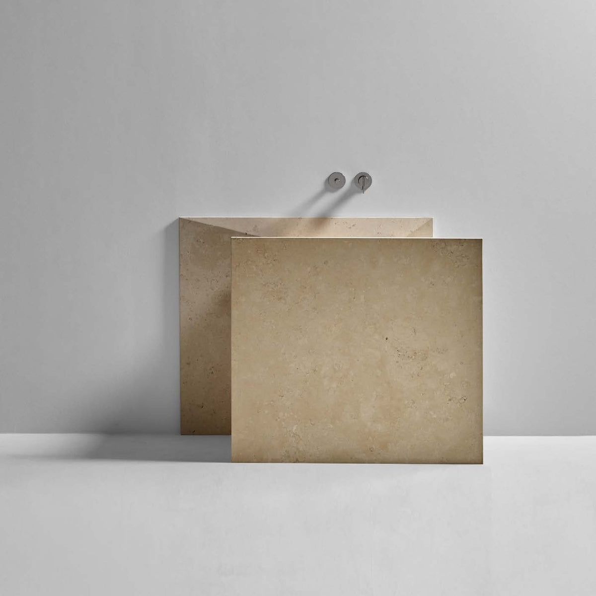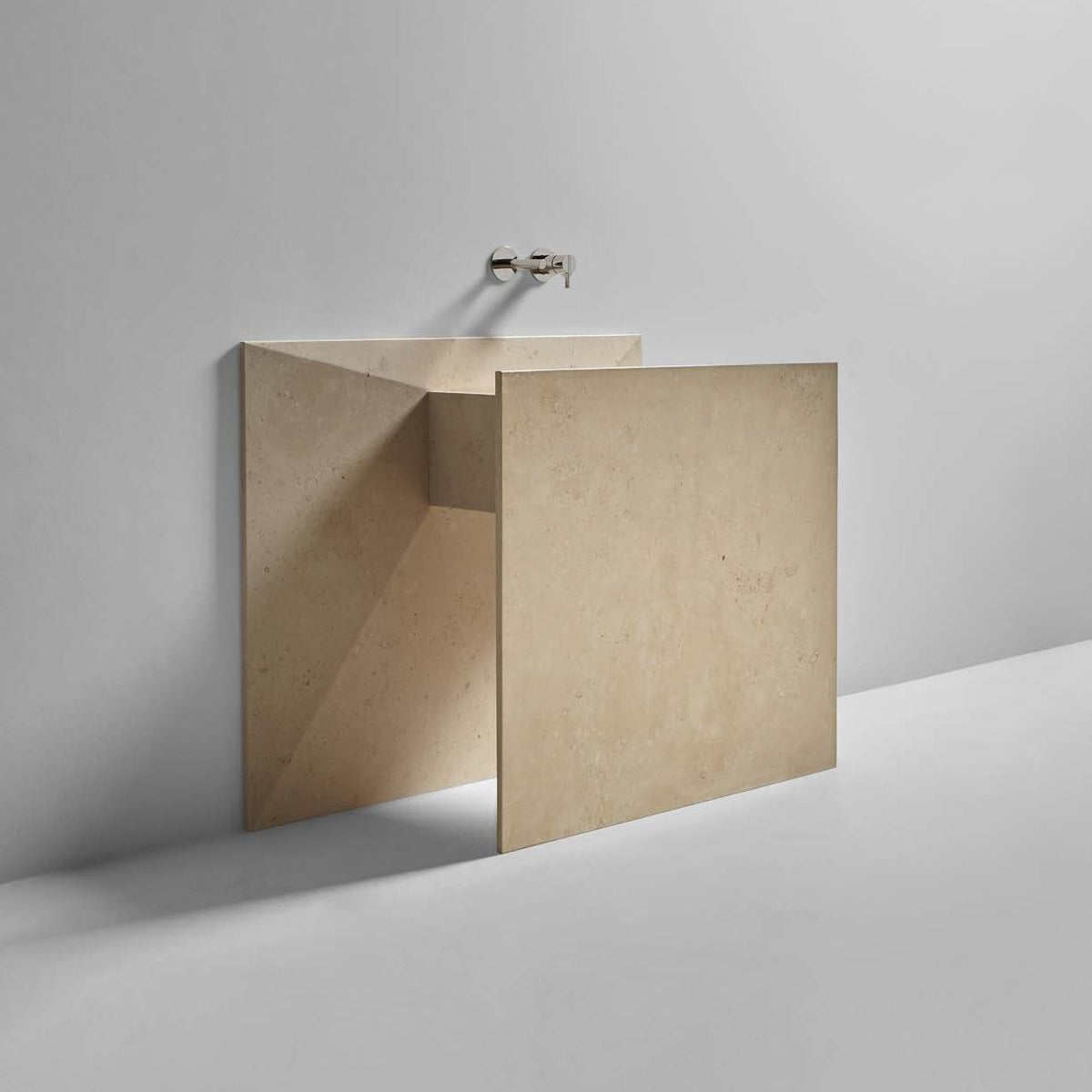 An architecture of staggered planes, a three-dimensional volume generated by the relationship between parallel and perpendicular surfaces and the voids created by their arrangement in space, as occurs in the skyline of a city, in the alternation between the built environment and free space. A sculptural presence achieved exclusively through straight lines, a generating force that comes from water and its primordial action, a marble origami that seems to have emerged from the wall to which it had been placed to express the full force of the material. It is precisely called Skyline, the marble sink that stems from an architectural conception of the object to generate a dynamic composition made of depth, perspective, light and shadow. In a constant dialogue with light and its infinite directions, the material comes to life to generate a sink that is essential and elegant at the same time, in which the minimal design of the surfaces leaves the material free to express itself and give character to the whole. A contemporary language, a overlapping of two sheets that viewed from the front conceals the basin and does not reveal the primary function but at the same time invites discovery by leaving open transversal glimpses of light.