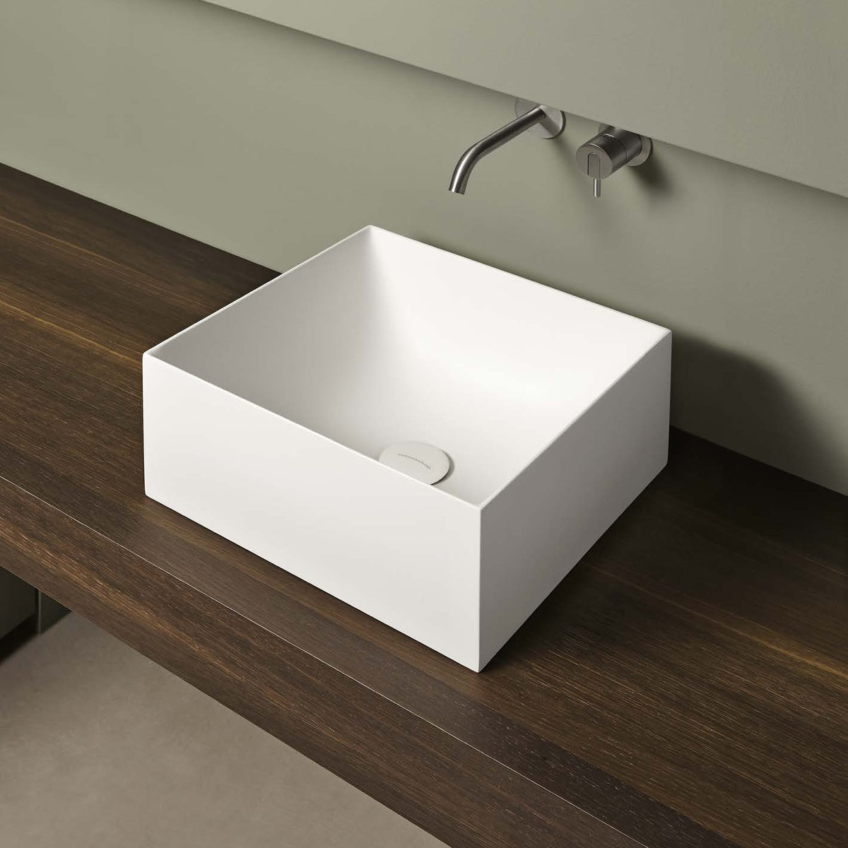 A sculptural shape, a volume ideally dug from the primordial force of water. Stratos is a washbasin made in Flumood o Colormood, material patented by antoniolupi, and available in a square or rectangular shape in two different heights (12.5 and 18.8 cm). Stratos can be top mounted or wall mounted.