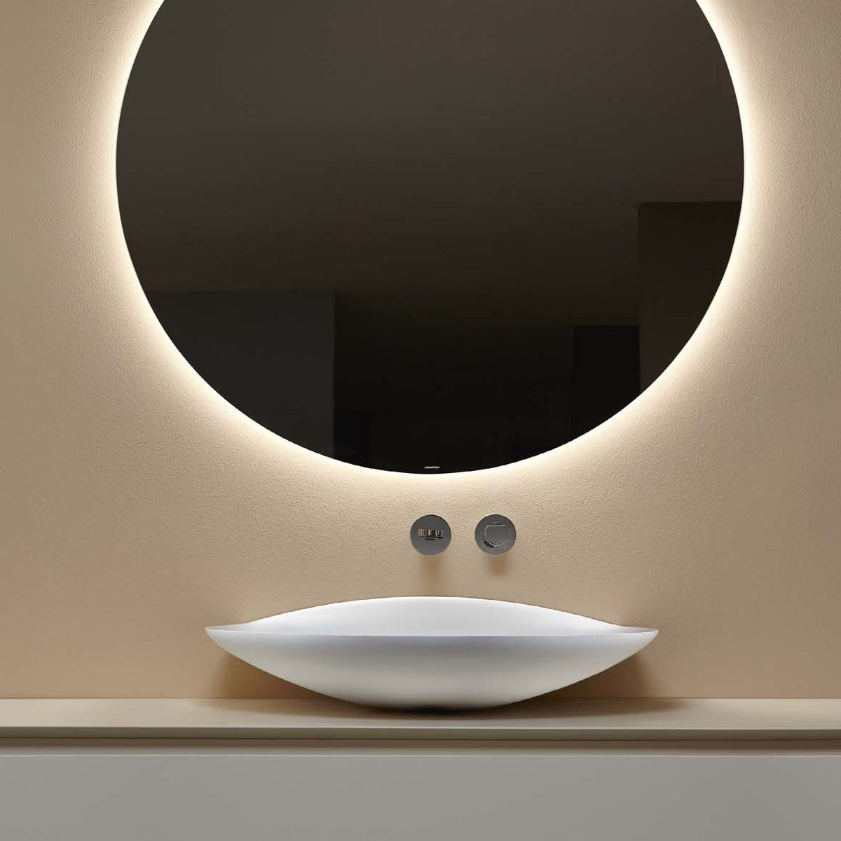 It could only be called Venus and refers explicitly to the concept of beauty, grace and feminine sensuality. The front image of the suspended washbasin leads immediately to that of a mouth, the smooth surfaces of the Flumood and Colormood amplifies the senses involving tact over sight. Venus is magically anchored to the wall, it is perfectly integrated with it through the back that comes up to cover the support components.