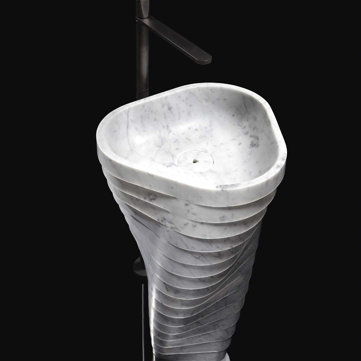 A generating force, an energy that emanates from the very essence of matter and that finds in water the privileged means to provide well-being and comfort. A new project that is part of the research traced with Intreccio to deepen the theme of contemporary matter, to investigate the complex dialogue between immobility and dynamism, between solidity and lightness, between reality and appearance. Vortice is the new free standing Carrara marble sink designed by Paolo Ulian for antoniolupi