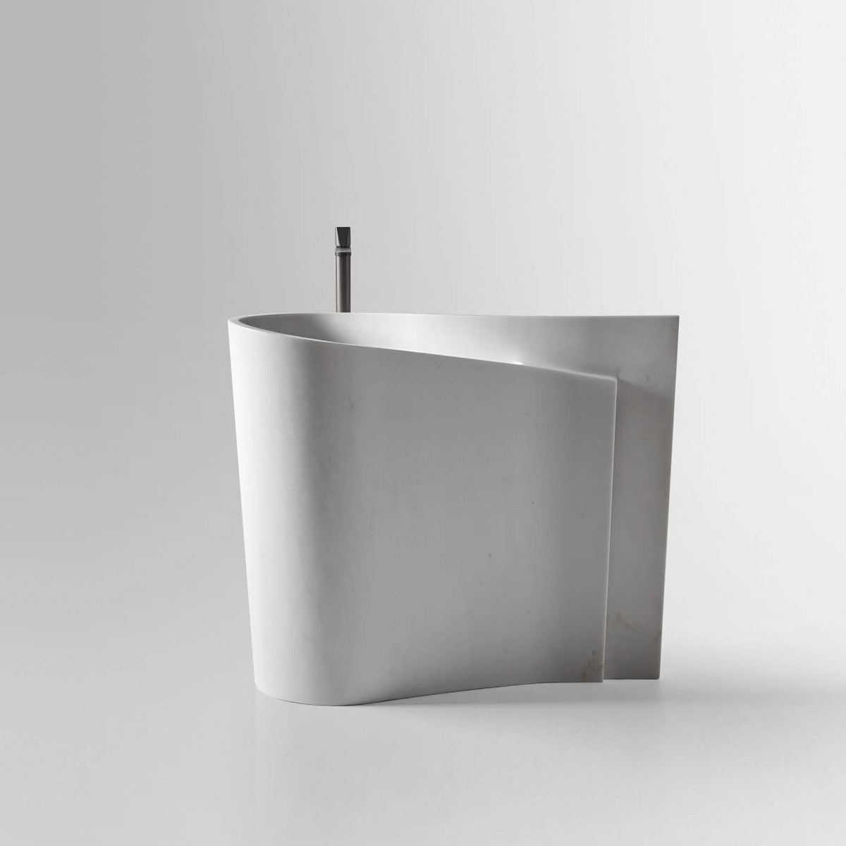 The energy of water finds an evident expression in this sink, a nature accentuated by the two flaps that do not overlap perfectly at the end, generating a practical support system for hand towels. The perfectly smooth surface of Wave is the result of the craftsmanship in marble processing and the perfect use of advanced machines, placed at the service of man to translate ideas and projects into masterpieces that alone characterize a space with style and uniqueness. The natural shades of the material make each freestanding sink unique and unrepeatable, giving it an exclusivity that transfers to the whole environment.