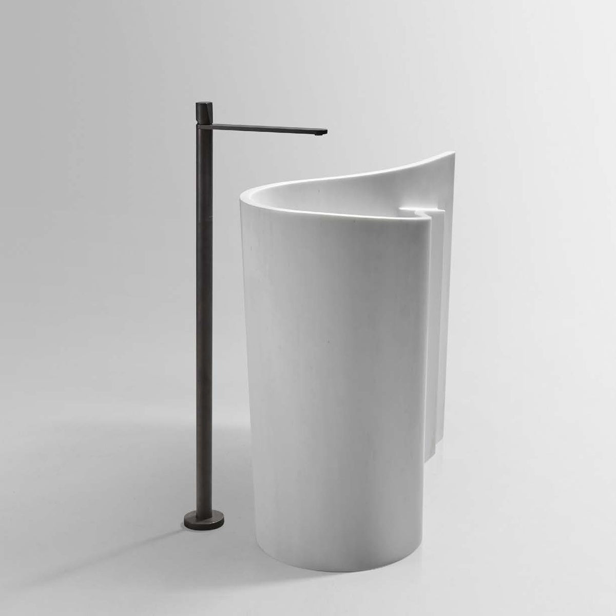 The most solid material that can be found in the bathroom is marble; the image, on the contrary, is ethereal, fluid, light, almost weightless; the shape is organic, natural, continuous, it seems to be generated by a folding movement of a sheet or a fabric on itself. The reference to nature or other materials modeled by man is explicit for Wave, the freestanding sink, the first project by Massimiliano and Doriana Fuksas for antoniolupi. Solid and sculptural like a monolith of marble, elegant and sinuous like a precious scarf, disruptive and capable of closing itself unleashing all its strength like a wave breaking on the shoreline.